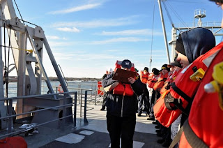 Today was also our first Fire/Emergency and Abandon Ship drill. While most of the ship just grabs their life jackets and heads to their lifeboats, many others have specific duties to do when the alarm goes off. Some are in the Fire Party, where they don all their fire gear and head to an announced part of the ship that is “on fire”. Some are in charge of the lowering and driving of the lifeboats. But regardless of what your job is, it’s important to get there as quickly as possible and assure that everyone is accounted for. We will continue doing these drills throughout Sea Term in order to ensure that we are all prepared if there is an emergency. Most of our drills will be done this week in preparation for our inspection by the US Coast Guard before we leave. Of all the drills, this is the most important because if we don’t do well then we can’t go! Fortunately, the only problem we usually have standing in the cold a little longer than we’d like.