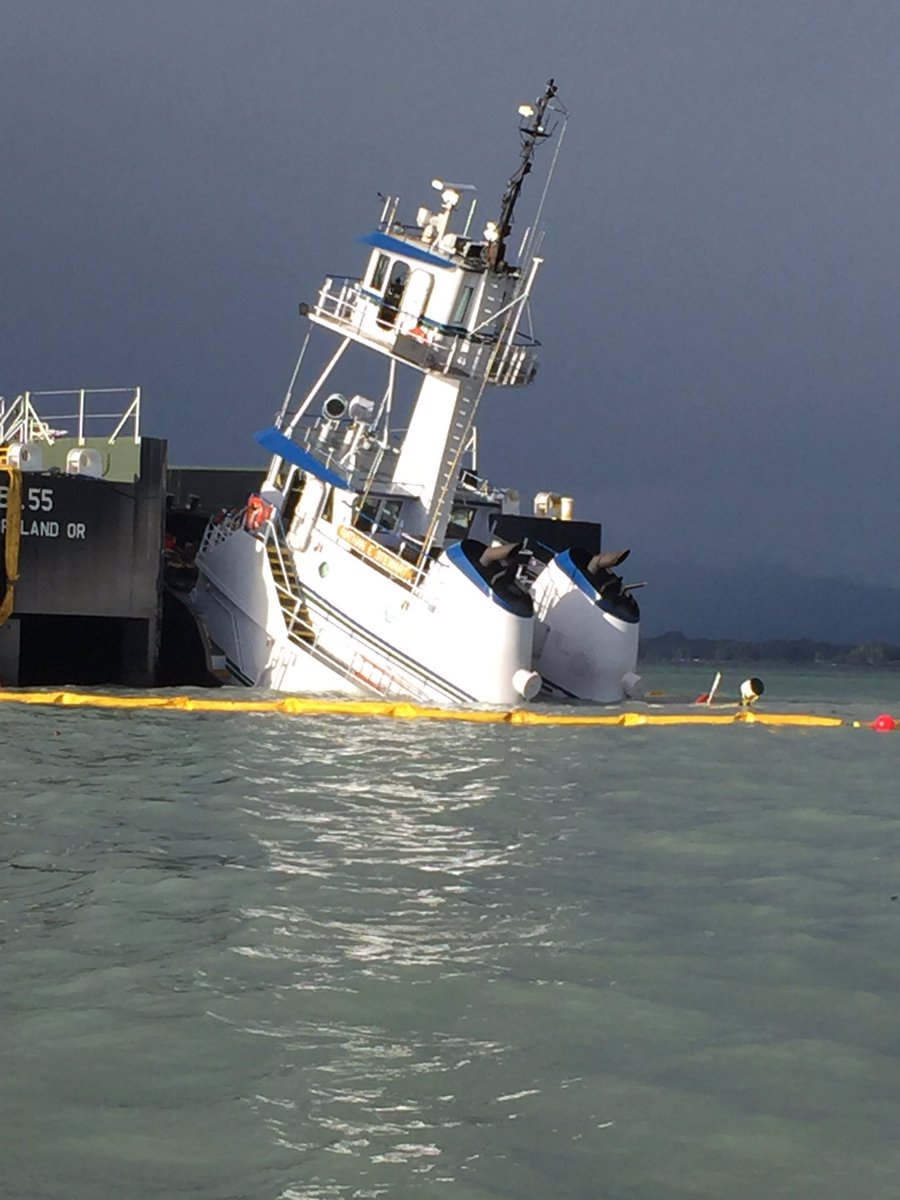 The tug, Nathan E. Stewart, belonging to Houston-based Kirby Corporation, ran aground just after 1 a.m. Thursday on a reef at the entrance to Sea Forth Channel on Athlone Island… The tug later sank at about 9:50 a.m.