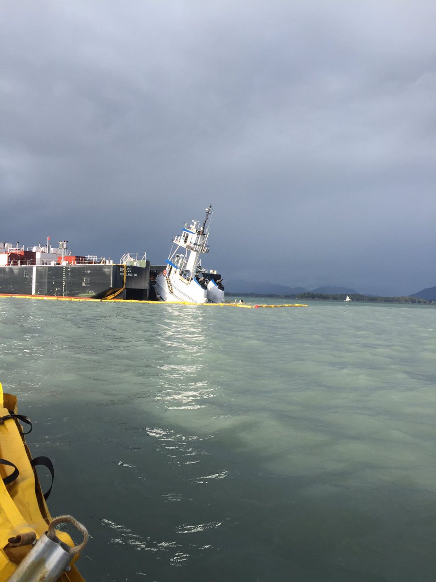 The articulated tug and barge (ATB) was sailing southbound from Ketchikan, Alaska to Vancouver when the incident occurred.