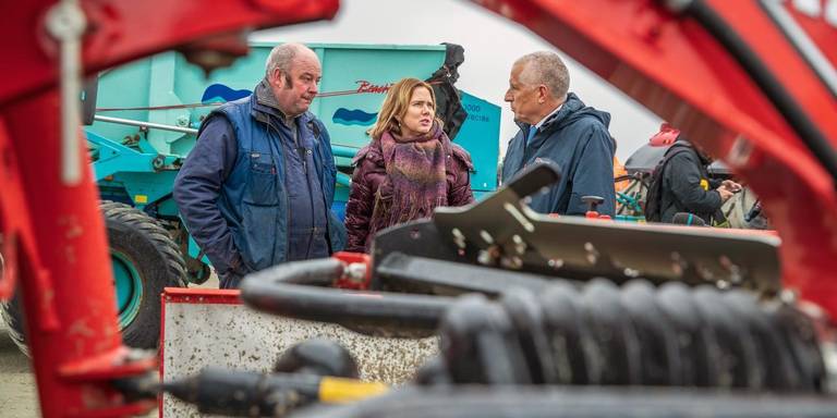 Cora van Nieuwenhuizen (middle), since 26 October 2017 Minister of Infrastructure and Water Management, is briefed during a visit to the island of Terschelling by Mayor Bert Wassink (right).