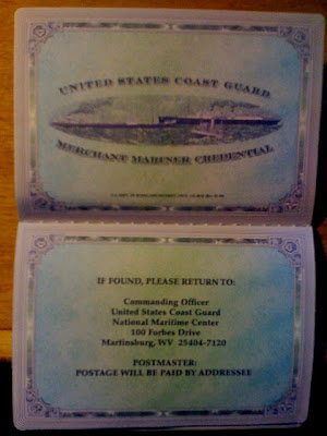 Thanks Nan for sharing this new Coast Guard License format. It’s the size and heft of a passport. Yes you still must also carry your TWIC card.