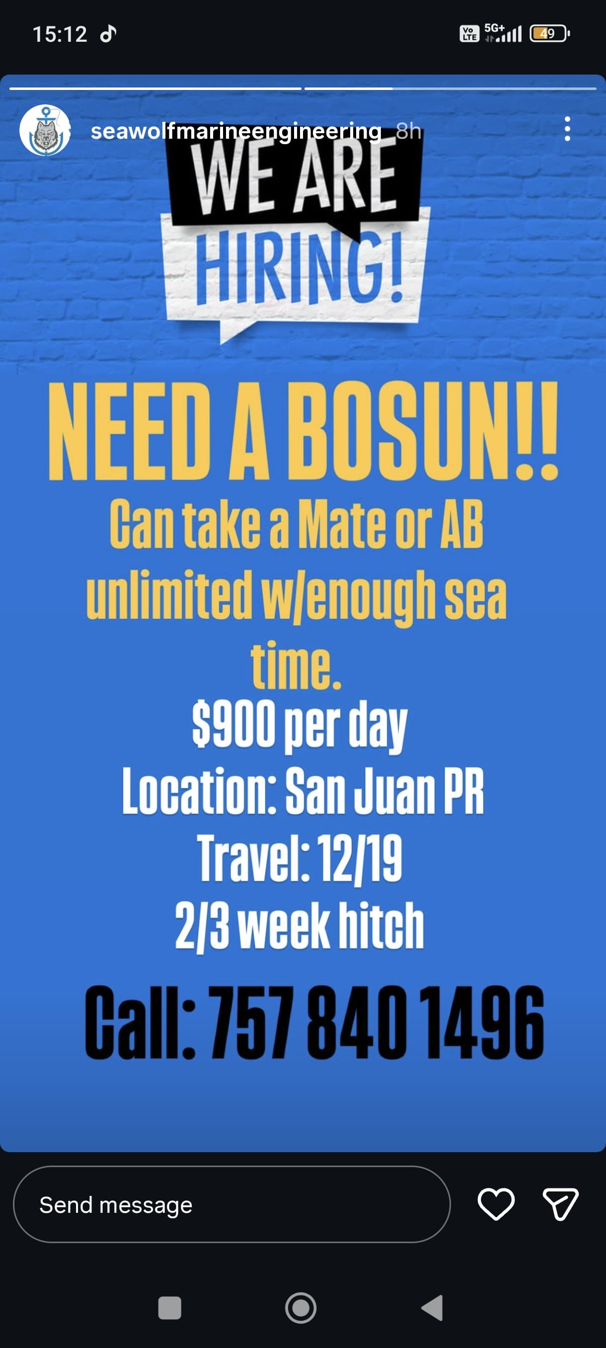 I guess I really meant any opportunities; no one has been asking Americans to crew up a VLCC in years. But lo and behold I got this crewing request email for a VLCC via the A&M Maritime careers newsletter and then I’m suspecting the instagram post is also for the VLCC because it lines up with the timing and has similar prospects as the original hiring call in the email.