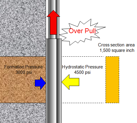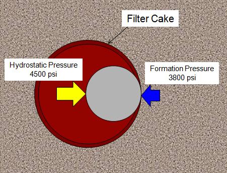 Differential sticking one of the most common problem occure during drilling as aresult of differential pressure between hydrostatic pressure of mud and formation pressure of mud ie when the hydrostatic pressure is greater than the formation pressure which cause pushing adrill string into afilter cake of permeable formation